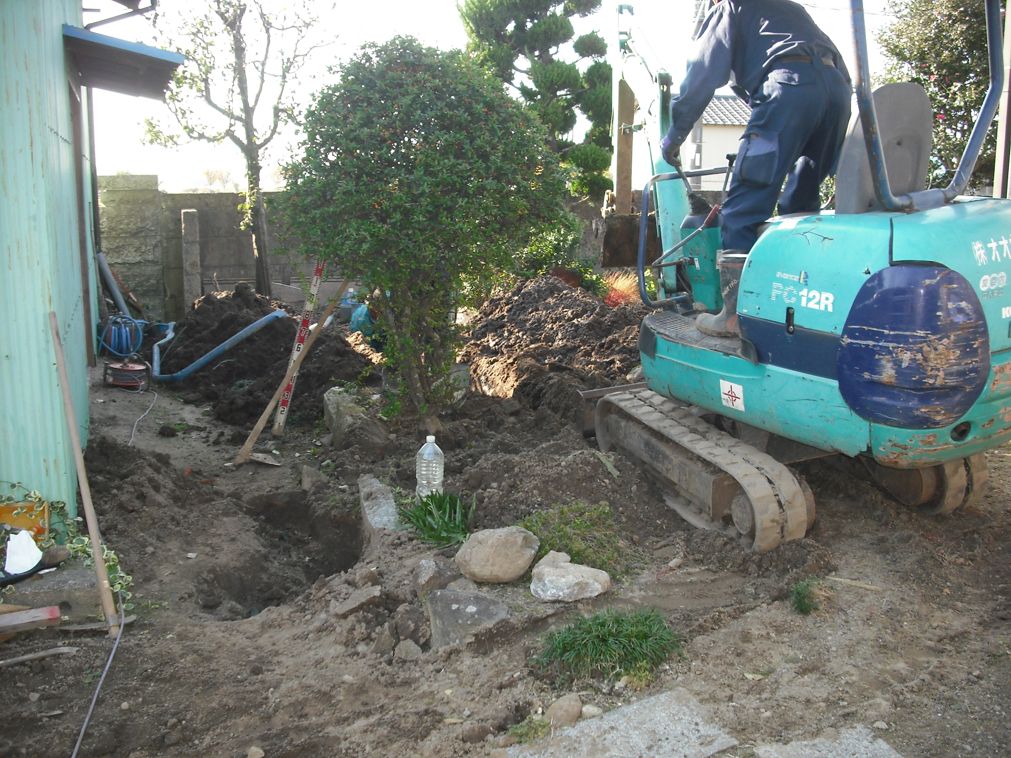 つくば市小田地内UT邸公共下水道接続工事、浄化槽解体