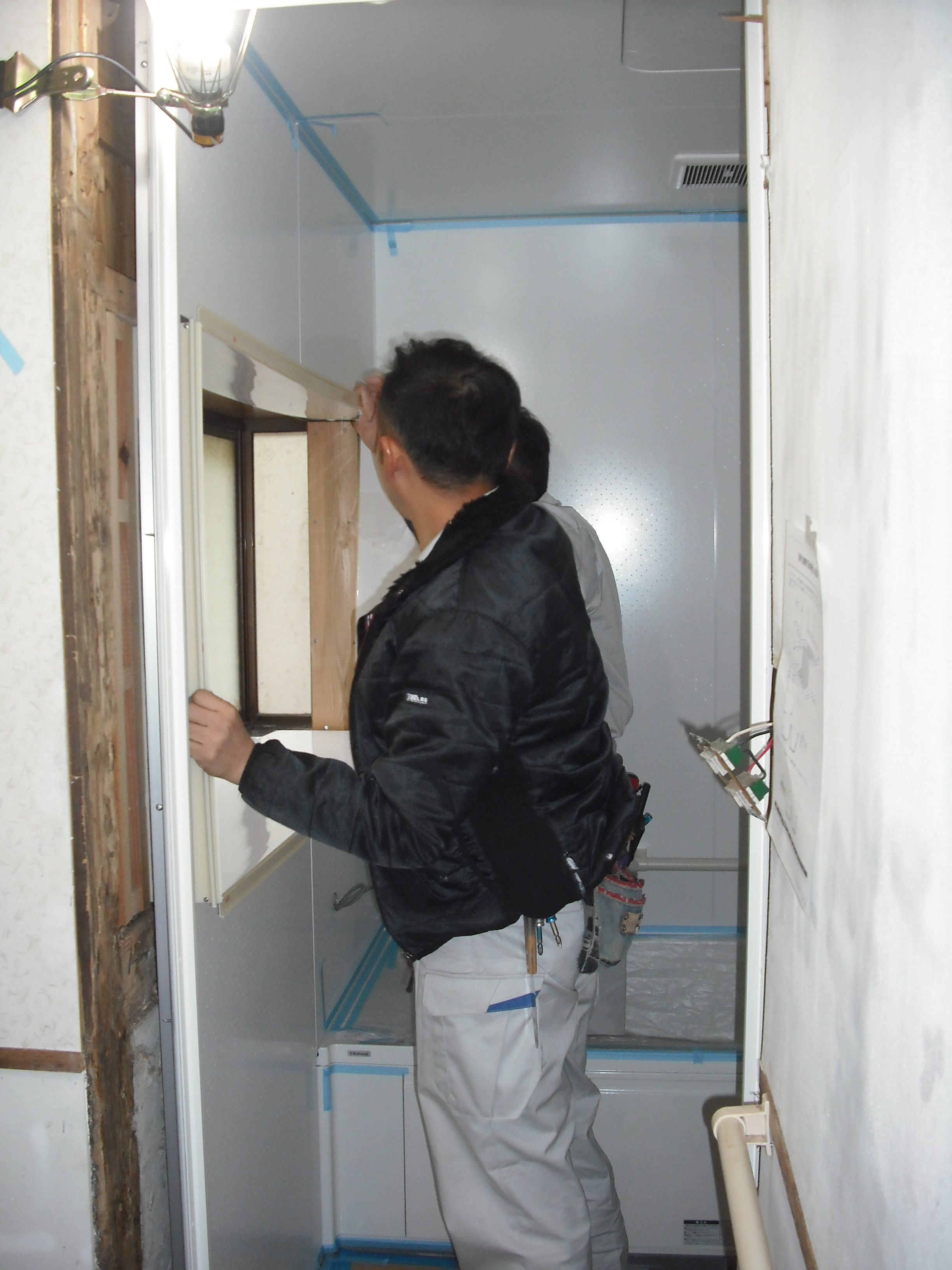 ユニットバス組立作業中